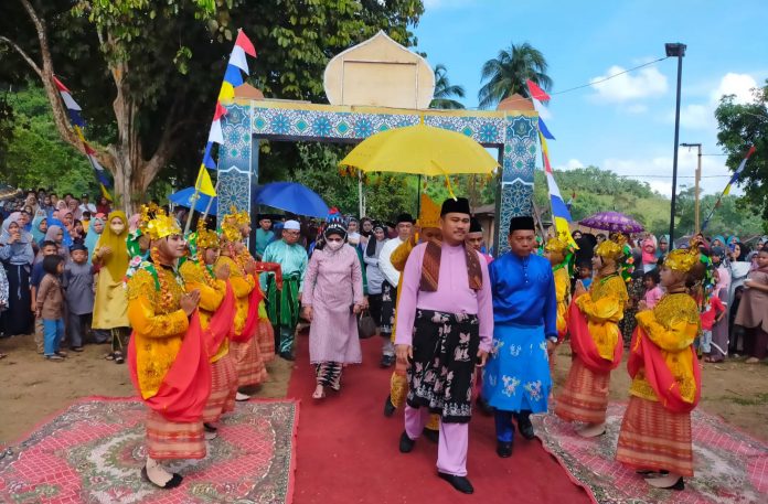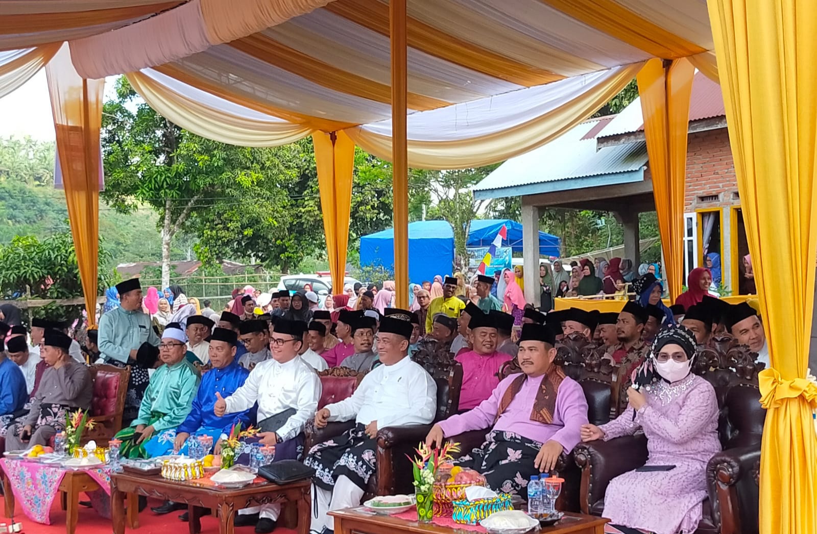 Limbur – Bupati Bungo Mashuri bersama sang istri Verawaty Mashuri mengunjungi Dusun Tuo Lubuk Mengkuang, Kecamatan Limbur Lubuk Mengkuang, Kabupaten Bungo, Rabu (1/6/2022).