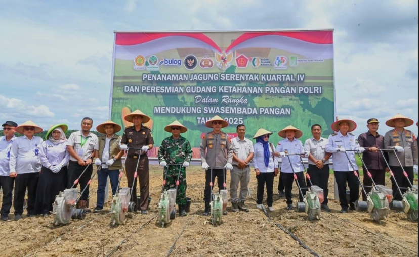 Muaro Jambi – Dalam upaya mendukung program Swasembada Pangan Nasional 2025, Kepolisian Daerah (Polda) Jambi menggelar kegiatan Penanaman Jagung Serentak Kuartal IV sekaligus Peresmian Gudang Ketahanan Pangan Polri. Acara tersebut berlangsung di lahan penanaman PT Brahma Bina Bakti KM 53, Desa Suko Awin Jaya, Kecamatan Sekernan, Kabupaten Muaro Jambi, pada Rabu (8/10/2025).